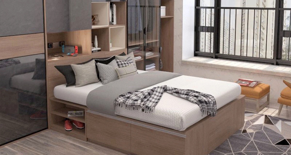 Placard d'angle pour chambre en panneaux de bois - 150 x 200 x 60